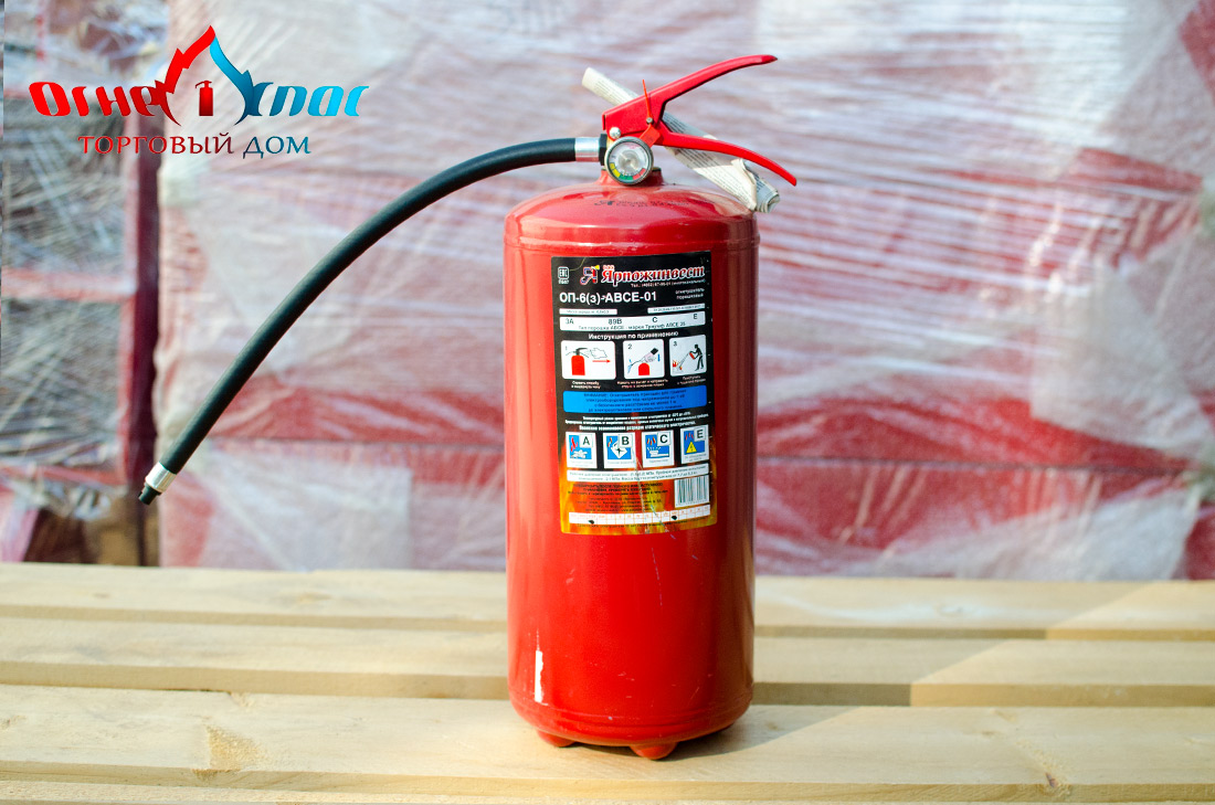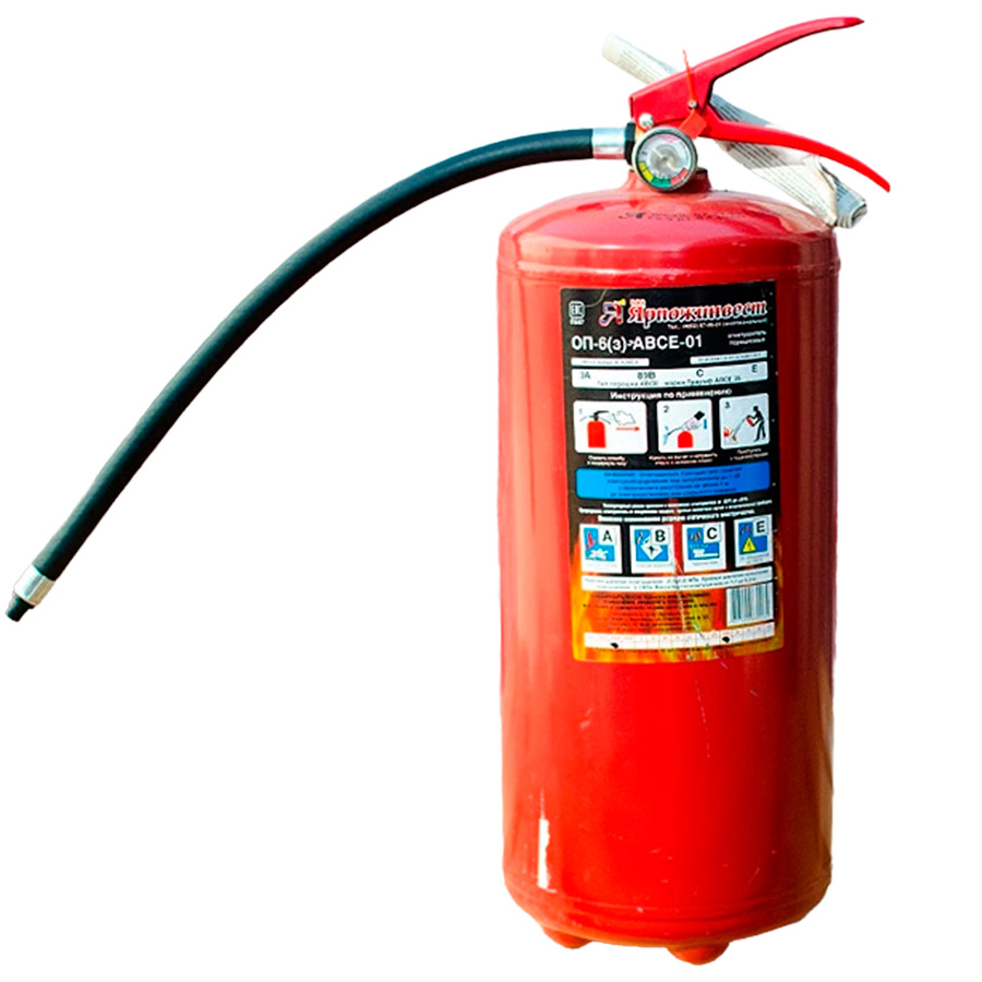 Порошковый огнетушитель ОП-6 (з) с зарядной массой 6,0±0,3 кг сертифицирован и подходит для прохождения техосмотра в РБ. Предназначен для применения на автомобильном, железнодорожном, речном транспорте, защиты помещений производственного и хозяйственного назначения, и в бытовых условиях в качестве первичных средств тушения пожаров классов А (твердых горючих веществ), В (жидких горючих веществ), С (газообразных горючих веществ) и электроустановок, находящихся под напряжением до 1000 В.